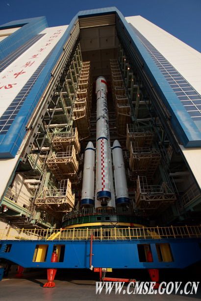 [September 20, Jiuquan, CMSE News] Spokesman of China Manned Space Engineering Project announced today that China will carry out first space rendezvous and docking mission. The integrated TiangongⅠ spacecraft and CZ-2F launch vehicle combination has been successfully transferred to launch site from VAB facility at Jiuquan Satellite Launching Center. The launch window for TiangongⅠ has been set from September 27 to September 30.